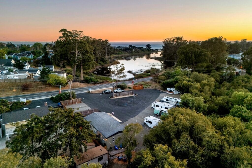 Tucked between Rodeo Creek and Corcoran Lagoon, Beach RV Pleasure Point is a boutique RV campground offering 16 creekside full-hookup sites.
